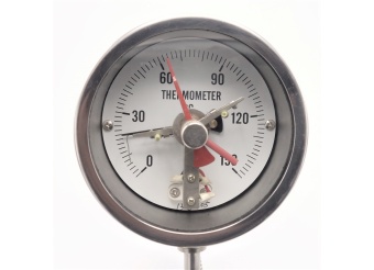 All-stainless steel bimetal thermometer with electrical contacts | SS304, 0-150°C, shaft 6"