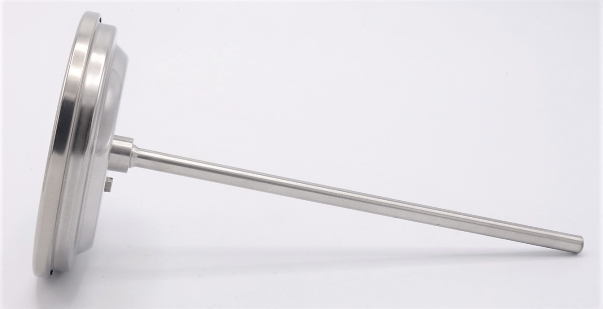 All-stainless steel bimetal thermometer with immersion shaft in well