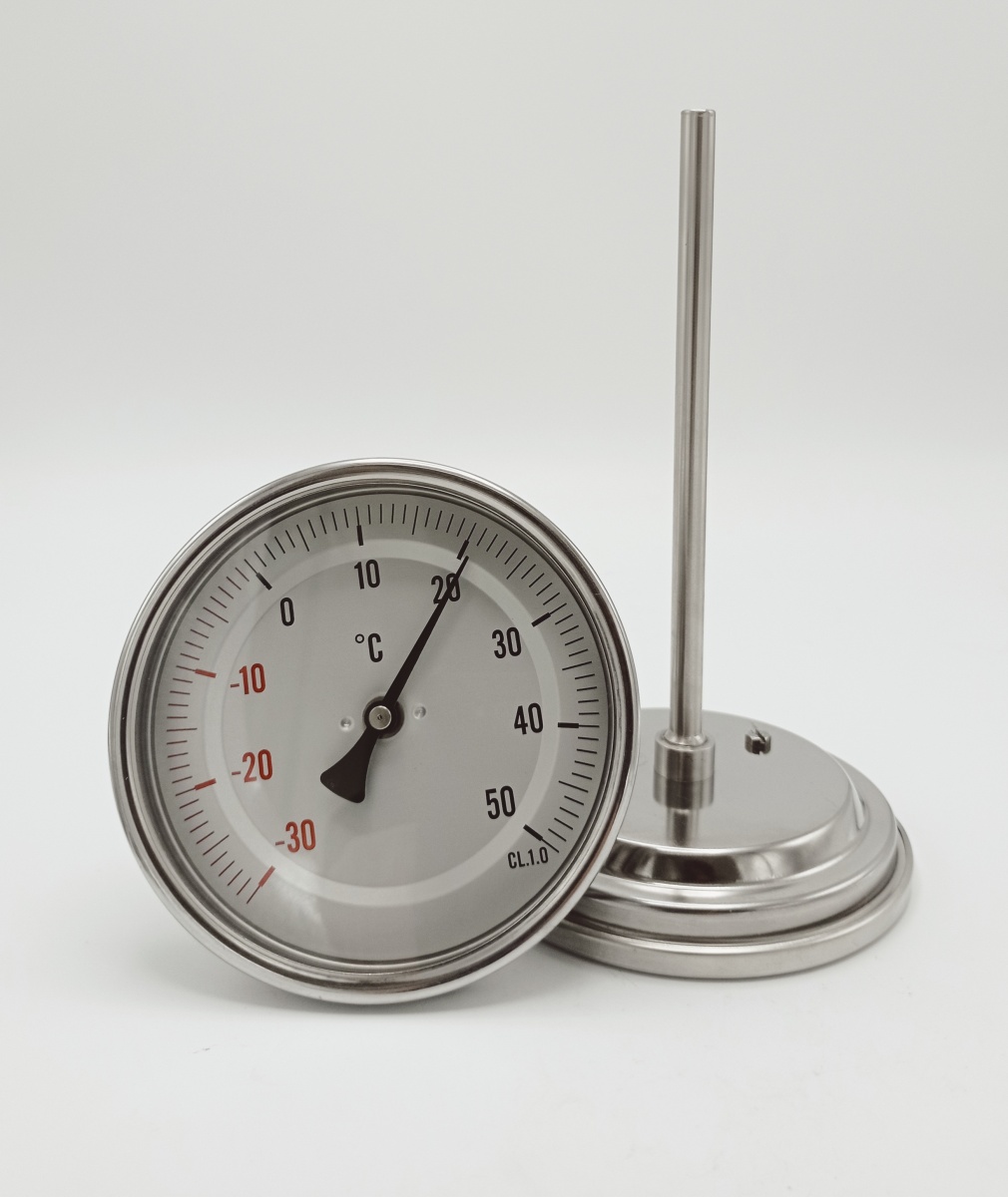 All-stainless steel bimetal thermometer with immersion shaft in well 150 mm