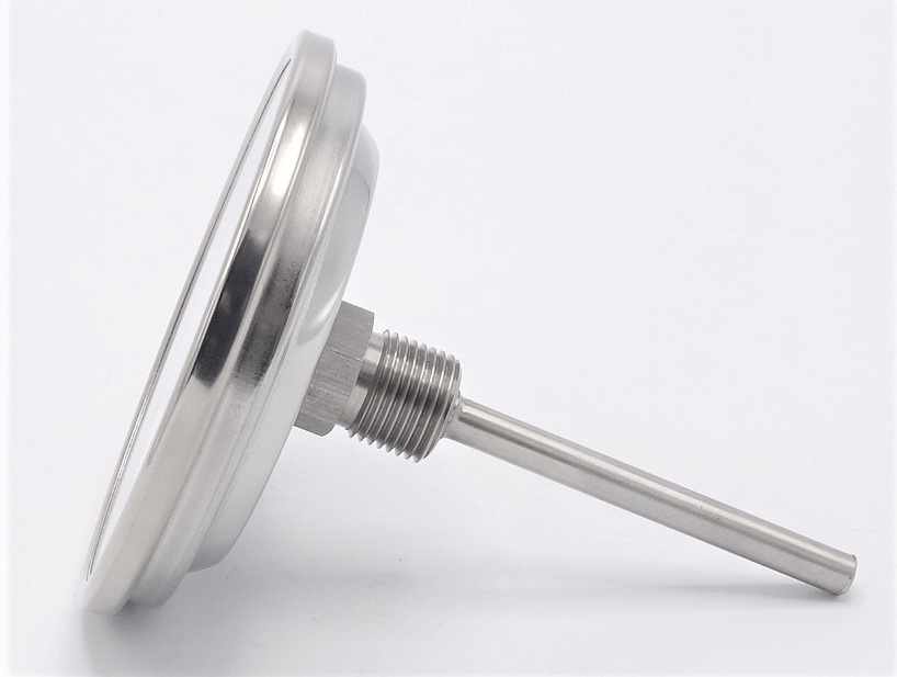All-stainless steel bimetal thermometer with immersion shaft, threaded