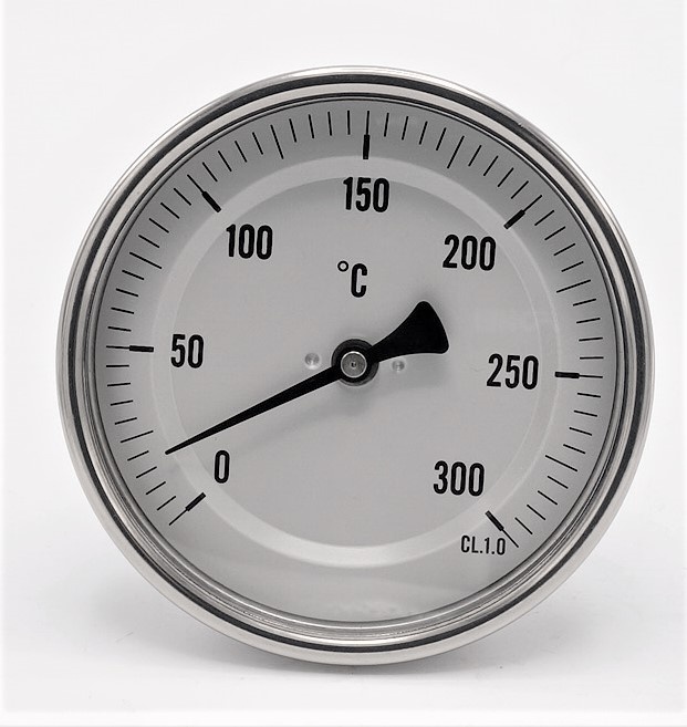 All-stainless steel bimetal thermometer with immersion shaft, threaded | 0-300 ℃ (1/2”) 100 mm