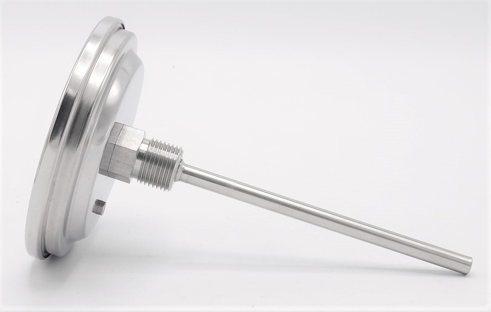 All-stainless steel bimetal thermometer with immersion shaft, threaded