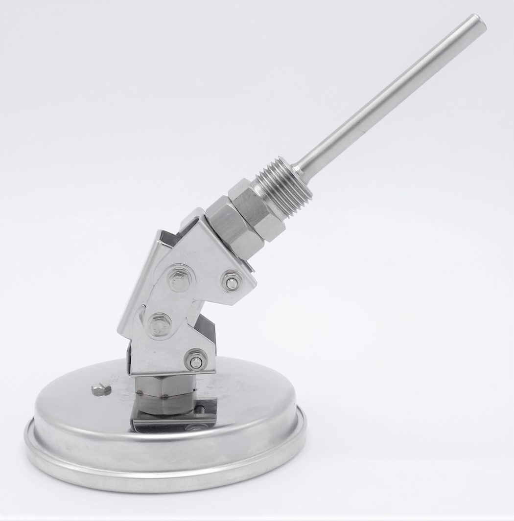 It is connected by screwing into a suitable counterpart. We recommend that the fittings be preserved during installation with Loctite 8105 food grade grease. Tightening the thermometers must always be done with an appropriate wrench, never with a manometer housing.