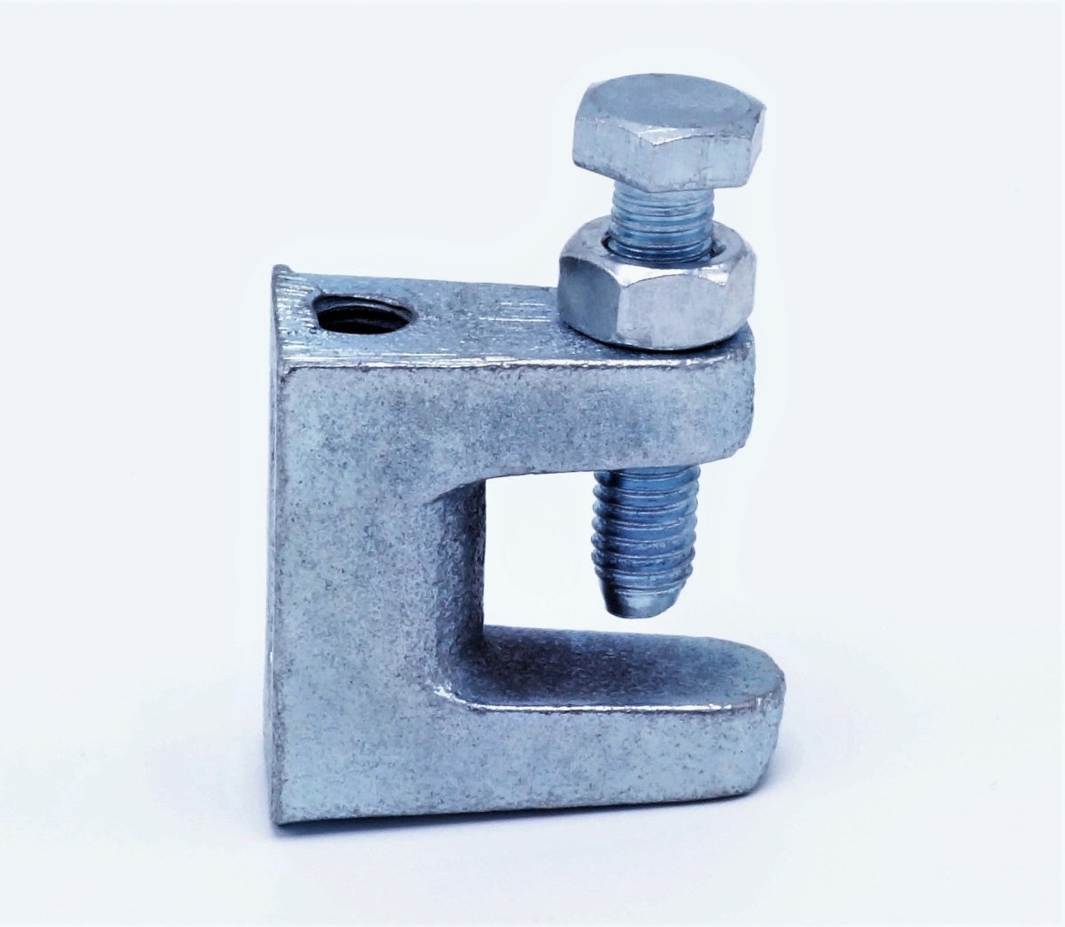 Beam clamp for fixing M8 threaded rod. The screw of the M8 terminal is adjusted in the tip so that it is not possible to slip the terminal out of the profile.