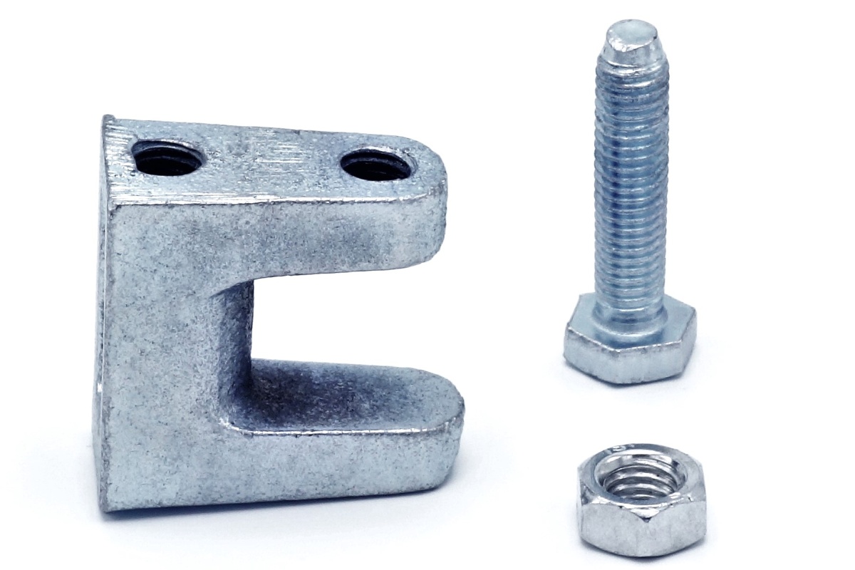 Bracket clips for fastening threaded rods. The screw is adjusted in the tip so that it is not possible to slip the clamp from the profile.