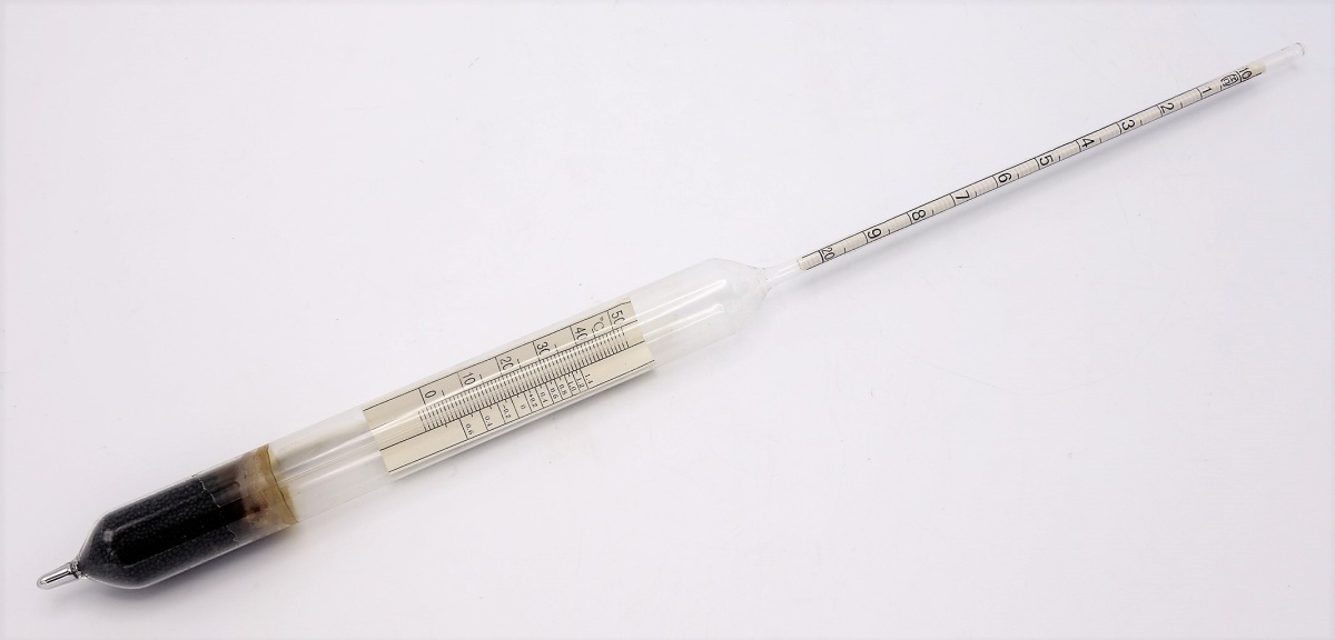 At the top of the meter is a scale from 0-10% or 10-20%. One scale interval = 0.1%. The gauge is inserted into the liquid and immersed (it is advisable to use a graduated cylinder with a sample of the liquid). On the scale, we read (at the level of level stabilization) how much tectin has% sugar.