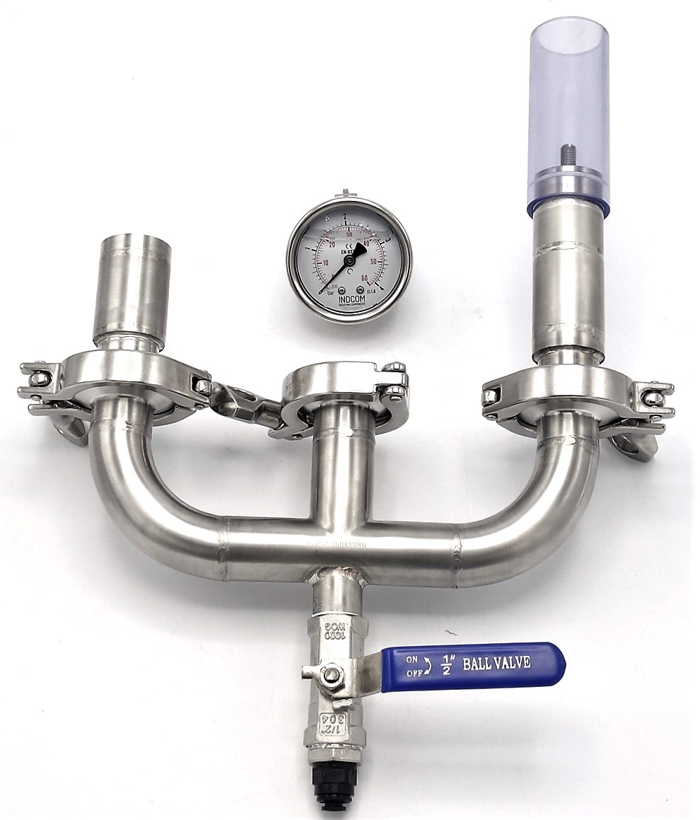 - the device is equipped with a stainless steel pressure gauge with glycerine filling