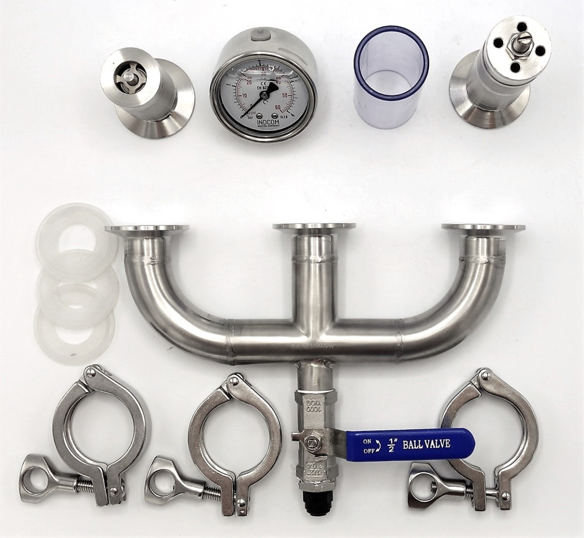 - 1/2 "ball valve with JG air fitting for the connection of external CO2 bottle