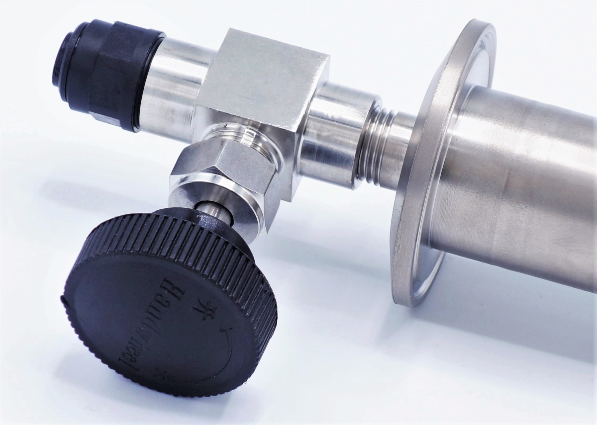 The carbonization element can be easily connected to the vessel, tank via CLAMP K50.5 mm. The flow rate of the gas or sterile air can be easily adjusted by using of needle valve ¼”.