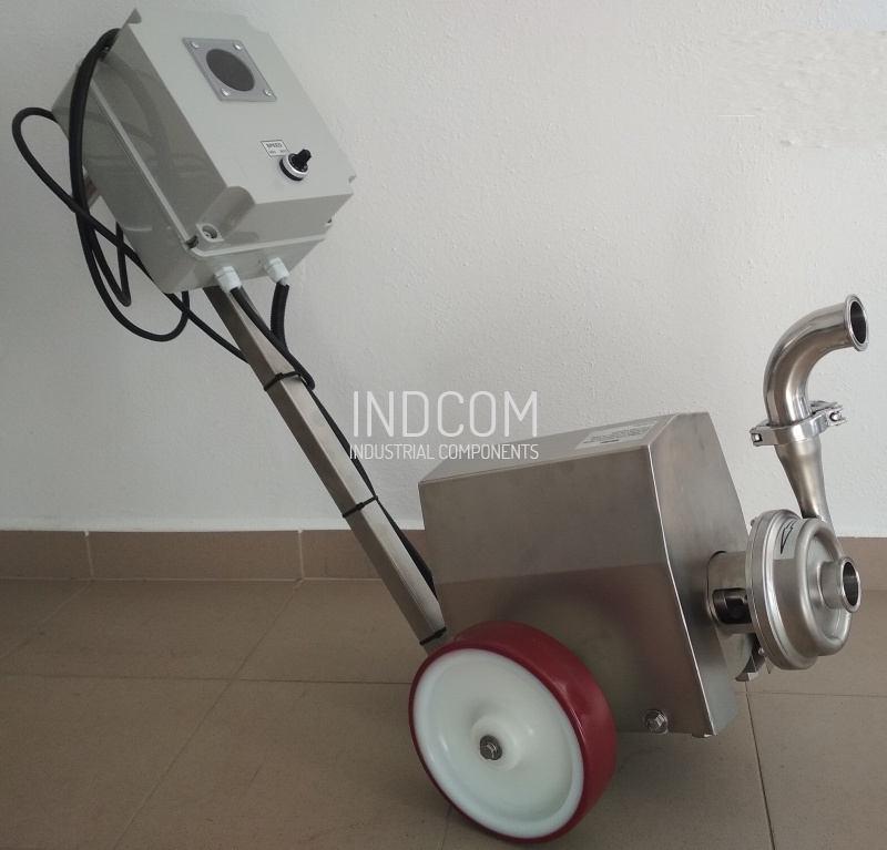 - The pump is mounted on stainless steel cart with robust casters. The cart is fitted with a handhold for easy handling.