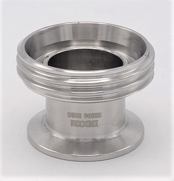 Coupling (or adapter) between a CLAMP connection and a food-grade (dairy) threaded fitting.