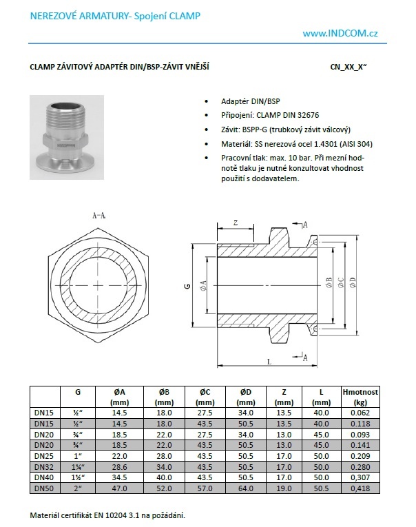 CLAMP Threaded Adapter, Outer Thread (nipl)
