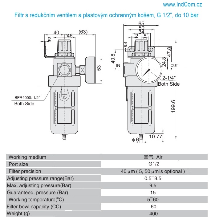 The filter with the reduction valve is intended for filtering compressed air and for pressure reduction.