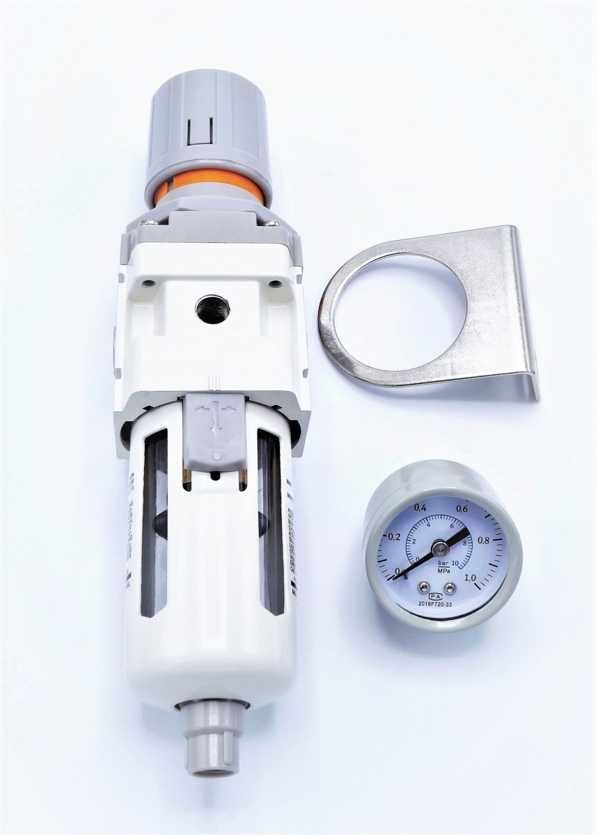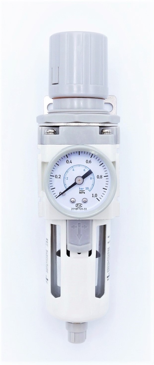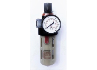 The filter with a pressure reducing valve is designed to filter compressed air and reduce pressure.