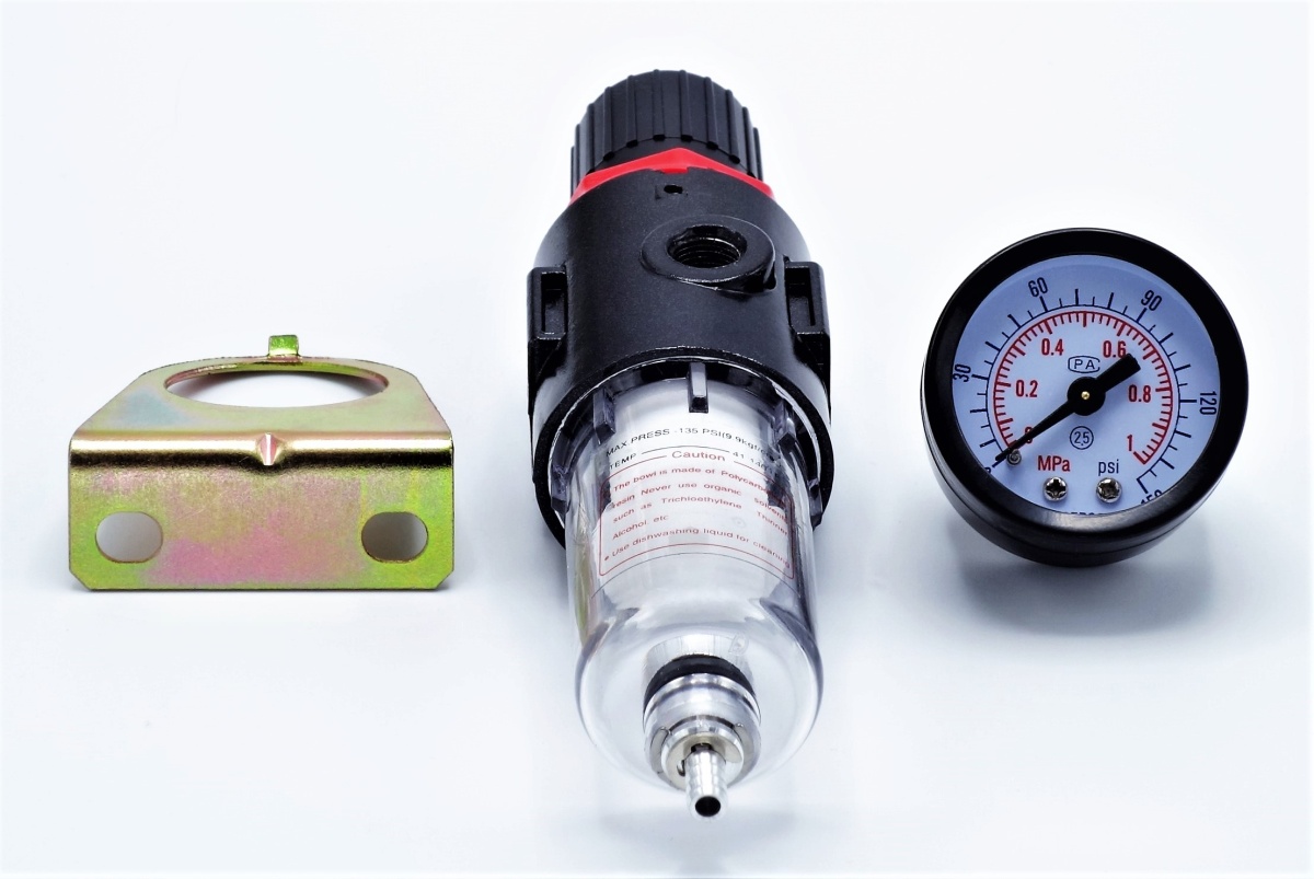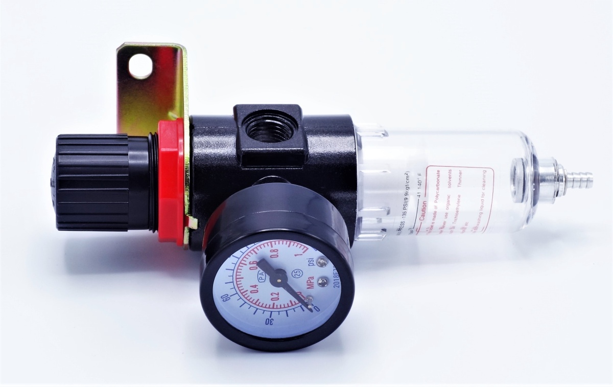 The filter with a pressure reducing valve is designed to filter compressed air and reduce pressure.
