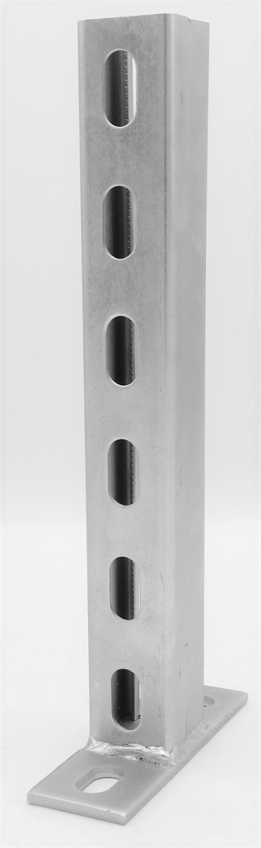 Robust design. U-profile rail 41 x 41 mm, welded on an anchor plate for direct wall mounting.
