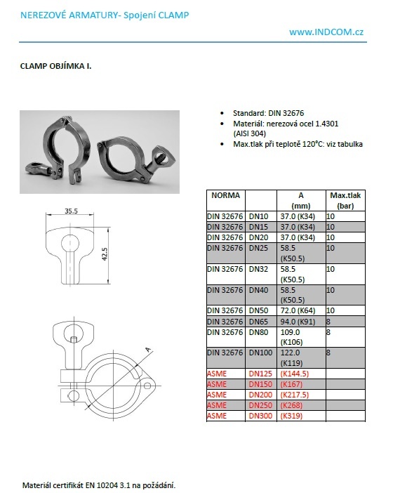| Type | DN100, CLAMP collar 119 mm |