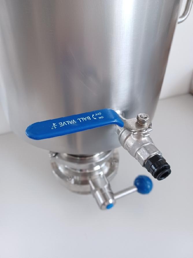 The HopsDrop generally consists of butterfly valve DN 100 that attaches to the fermenter's dry hopping port (the valve can be customized based on your dry hopping port). Then HopsDrop has a 1/4” BSP ball valve port for your CO2 inlet, pushing the oxygen out of the 1/4” BSP ball valve port in the lid. There is also a pressure gauge 0-4Bar installed in the lid.