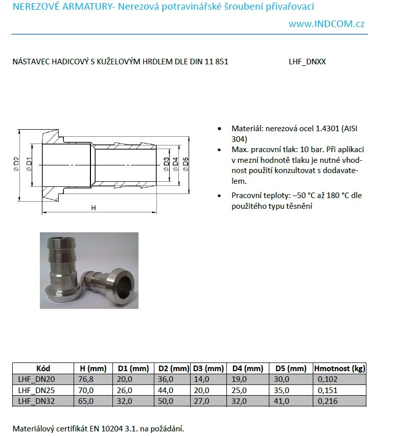 The union nut is not included in the attachment and must be ordered separately: Převlečná matice dle DIN 11851
