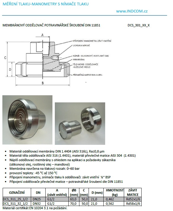 Membrane separators are used in combination with suitable manometer and pressure sensors. The membrane separators are intended for applications where the process medium must not come into contact with the meter (eg due to contamination, presence of particulate matter, viscosity, etc.)