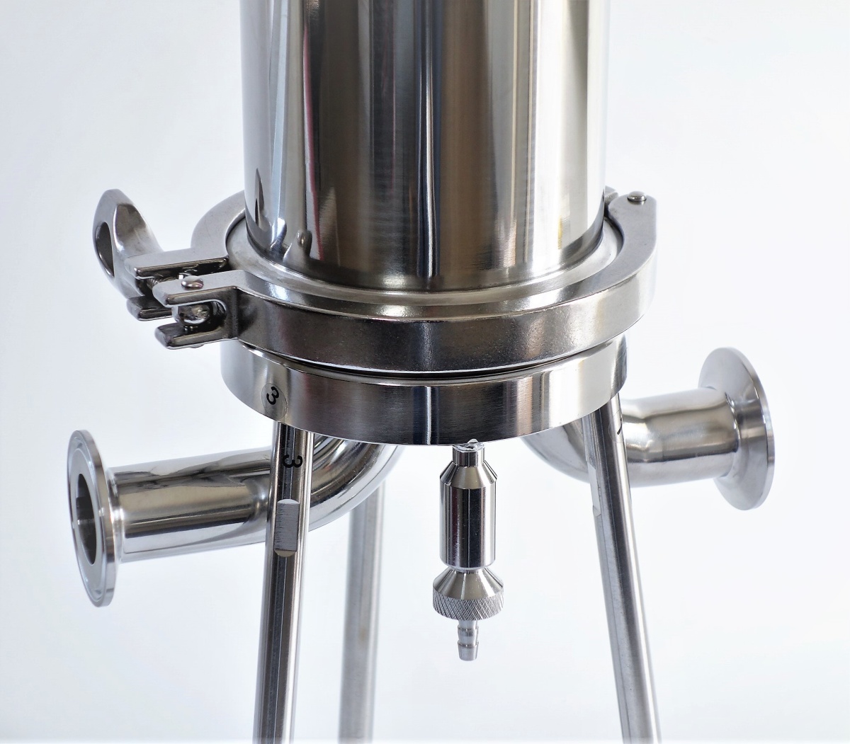 The filter body is intended for direct contact with the filtered product. The candle is connected to the filter housing with a lock (designated O-226). Connection of housings to the multi-stage filtration system using a DIN CLAMP connection.