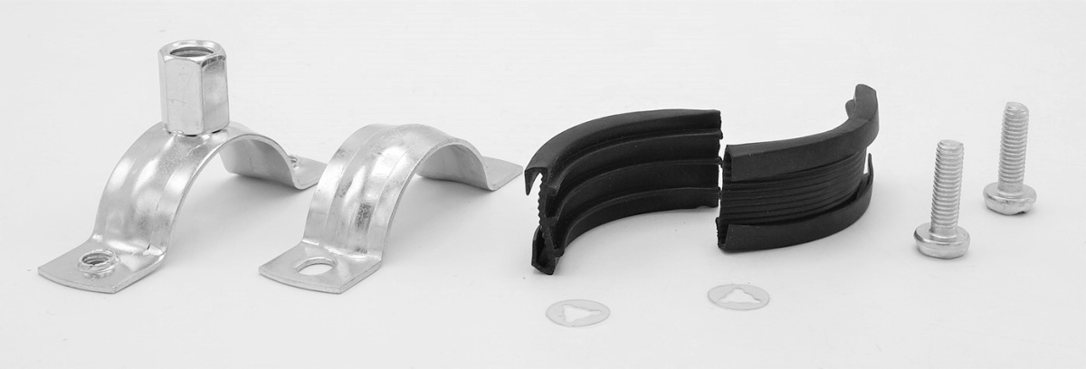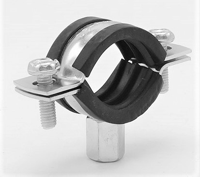 Pipe Clamp with Rubber EPDM, two screw, M8/M10, galvanized