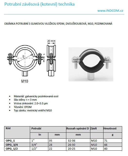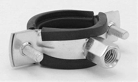 Pipe Clamp with Rubber EPDM, two screw, M8/M10, galvanized