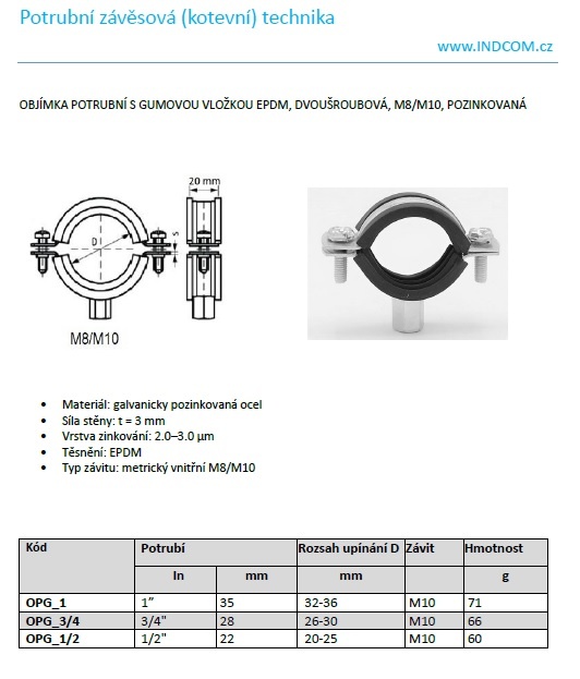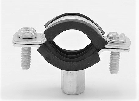 Pipe Clamp with Rubber EPDM, two screw, M8/M10, galvanized
