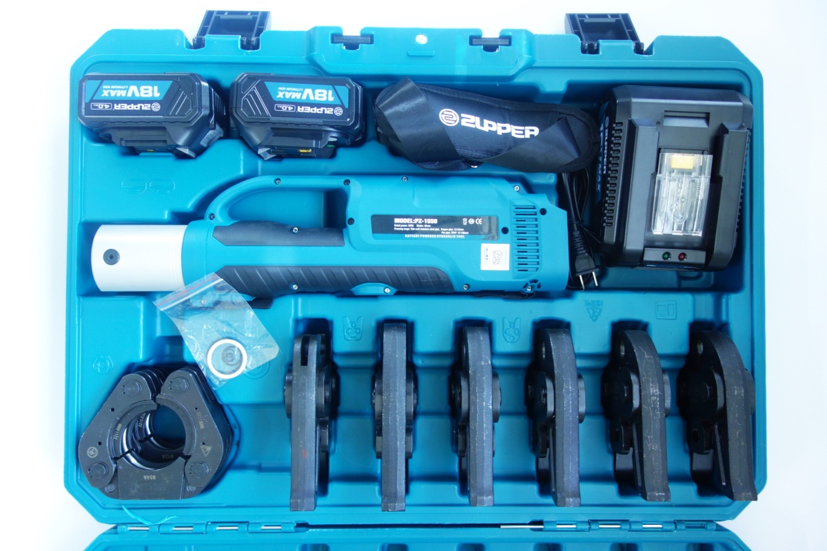 Multifunctional pressing set with 7 replaceable jaws in a practical box.