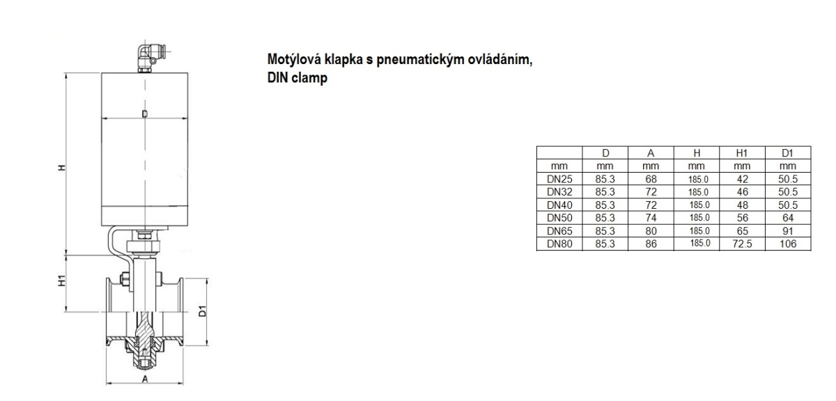 Pneumatically operated butterfly valves, CLAMP DIN 32676 (C-C)