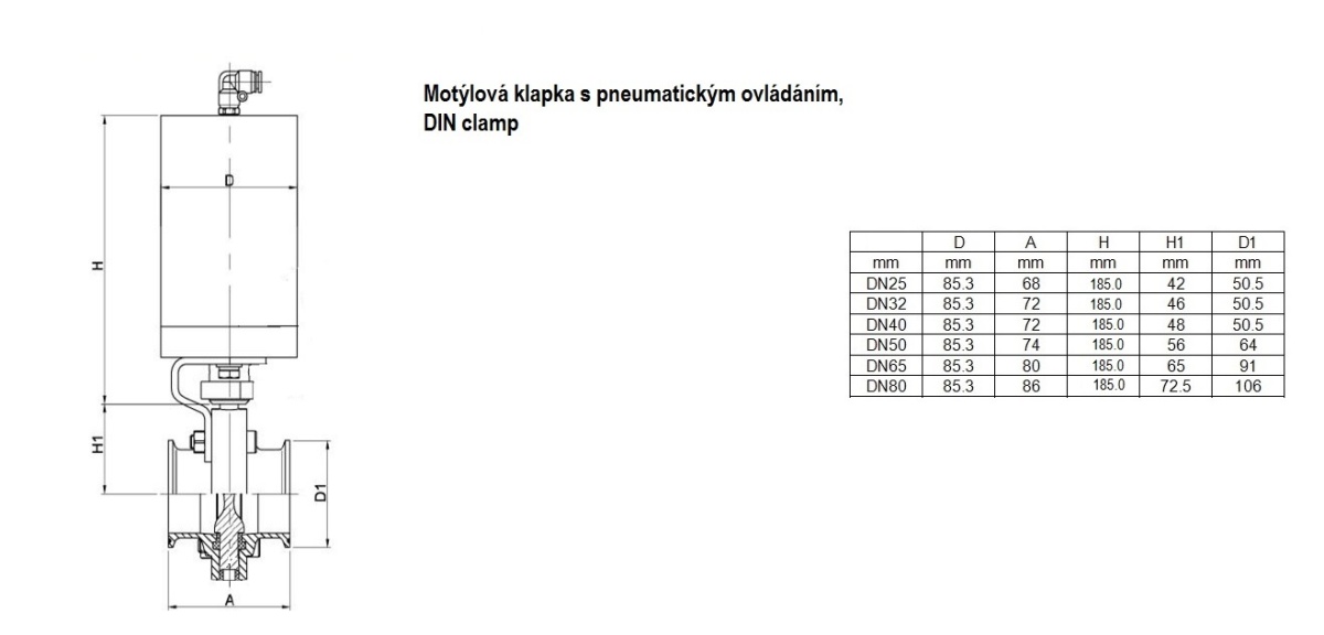 Pneumatically operated butterfly valves, welded (S-S), standard DIN 11850-1
