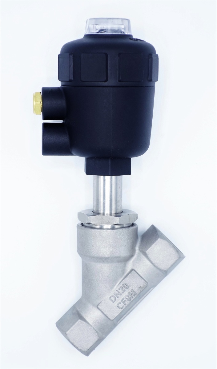Pneumatically-operated Valves, Angle Seat - 45°, G-thread, Seal PTFE