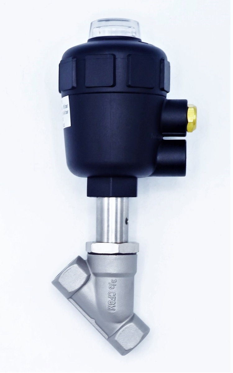Pneumatically-operater Valves, Angle Seat -45°, G-thread, Gasket PPS
