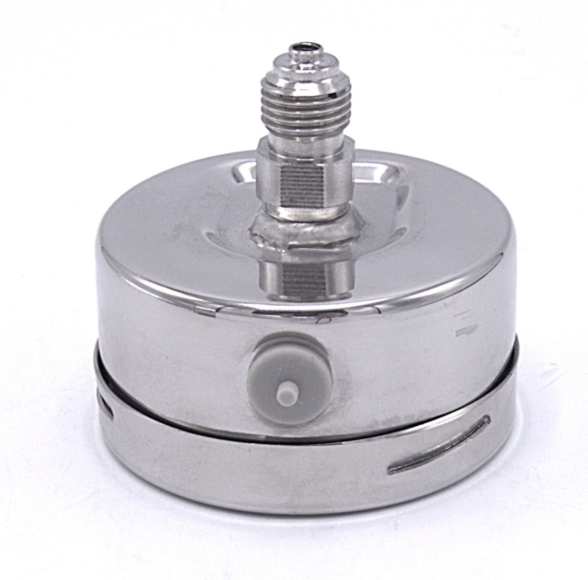 It is connected by screwing into a suitable counterpart. We recommend that the fittings be preserved during installation with Loctite 8105 Food Vaseline. Refillable manometers must be vented using a vent plug. Tightening the manometers must always be done with the appropriate wrench, never with the manometer housing.