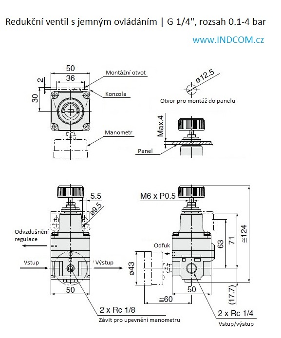 Reducing valve with fine regulation G 1/4", range 0.1-4 bar