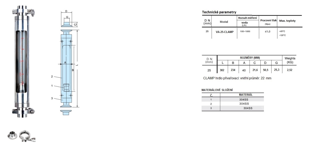 • Připojení: clamp DN25 - límeček 50,5 mm, vnitřní průměr 22 mm