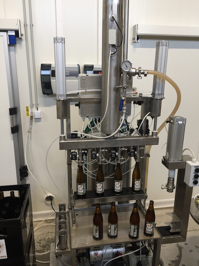 - the bottling line has 4 rinsing nozzles, 4 filling heads with filling needles and 1 crown capping head