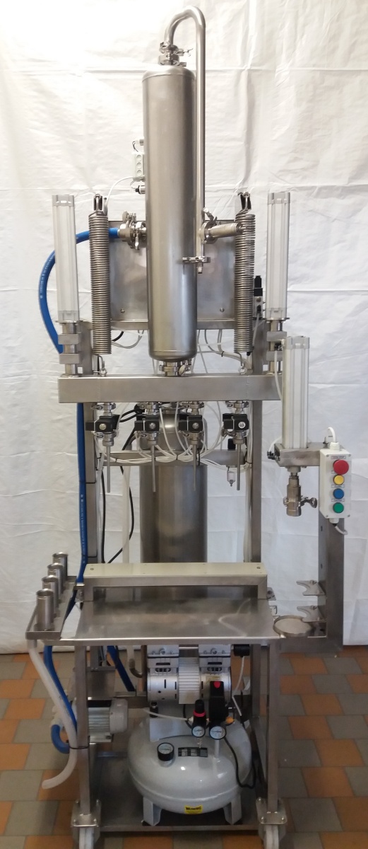 - Pneumatic capping of the bottles (crown caps)