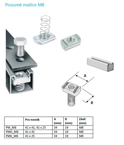 Slide nut M8 zinc plated (slider with spring) for a solid wall mounting beam.