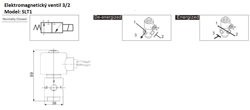 Technical parameters of solenoid (electromagnetic) valves type 3/2: