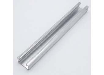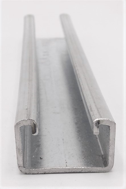 The solid mounting beam is made of galvanized steel. Robust design. Mounting rail with U 41 x 41 mm profile for horizontal or vertical applications. Universal and complete assembly system.