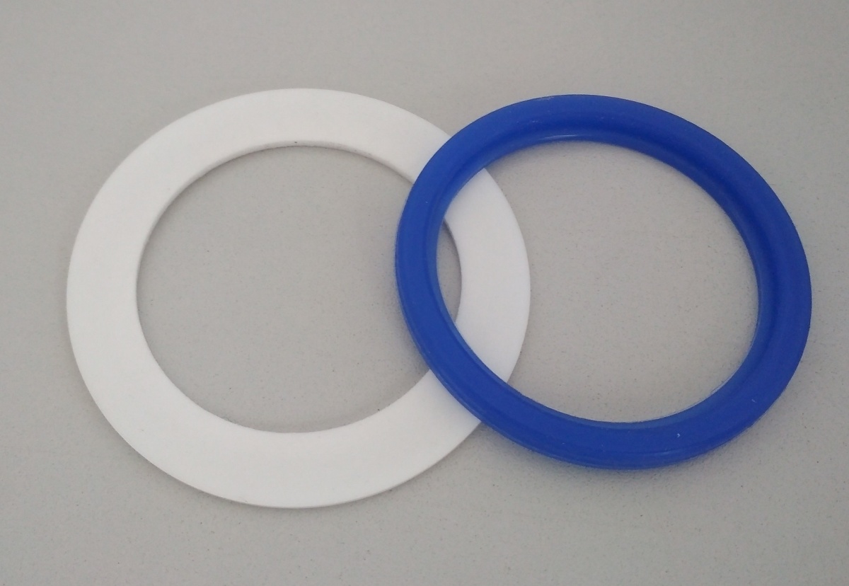 Material: PTFE (white color) + silicone (blue color - gaskets for food fittings DIN11851)