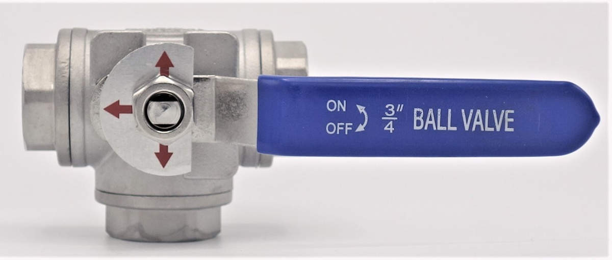 Stainless ball valve, three- way, threaded, drilling "T"