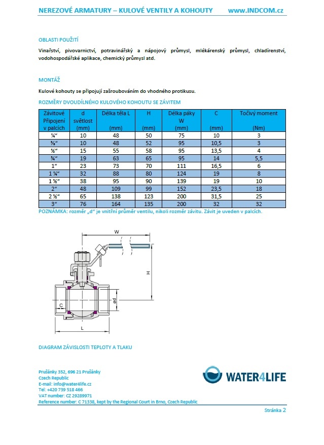 Kulové kohouty se připojují zašroubováním do vhodného protikusu. Doporučujeme při montáži provést konzervaci šroubení potravinářskou vazelínou Loctite 8105. Při závitovém spojení jiných komponentů systému s armaturami dbejte na to, aby byly přidržovány klíčem. Předejdete tak poškození armatur vlivem překroucení. Před montáží je nutno vypláchnout trubkový systém, aby se zamezilo poškození těsnění mechanickými nečistotami.