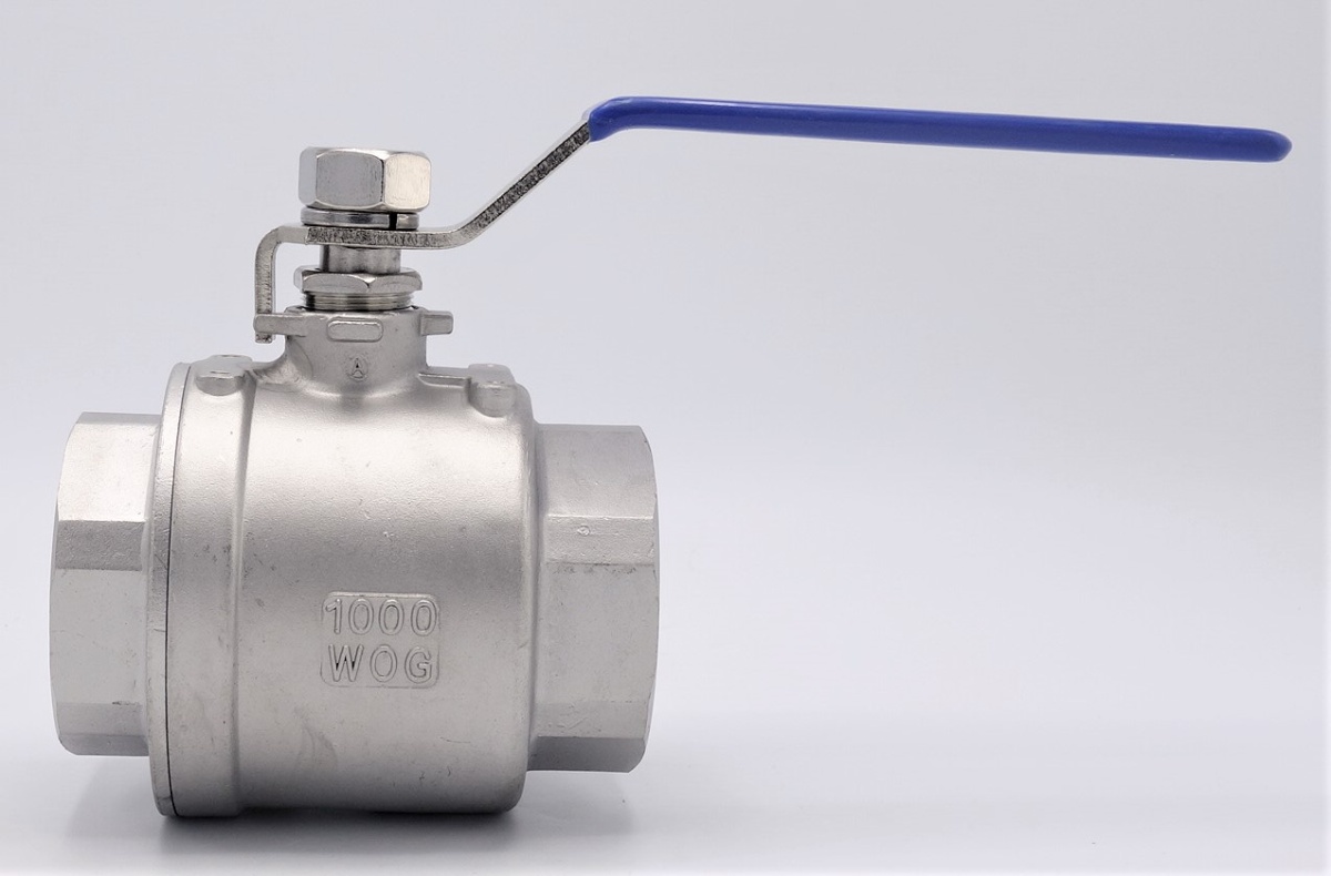 Stainless steel ball valve with full bore, two-piece, threaded