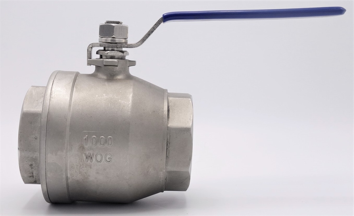 Stainless steel ball valve with full bore, two- piece