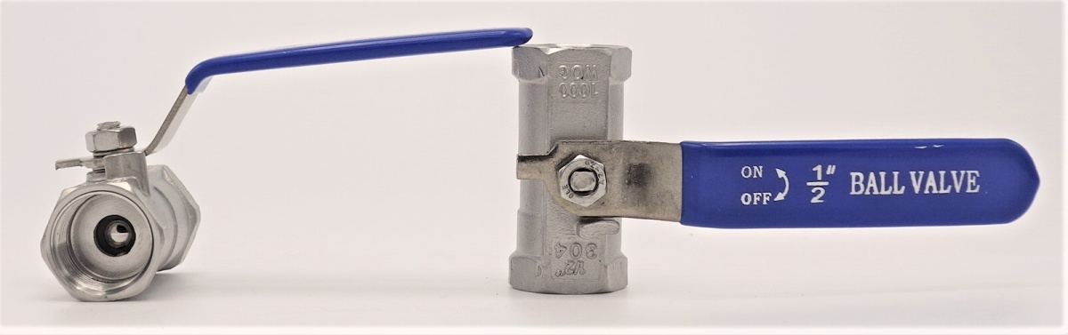 Constructionone-piece ball valve made of stainless steel AISI 304 with a reduced bore.