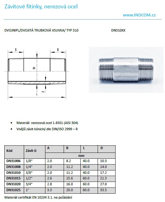 Stainless Steel Barrel Nipple / type 310 | 1/2"