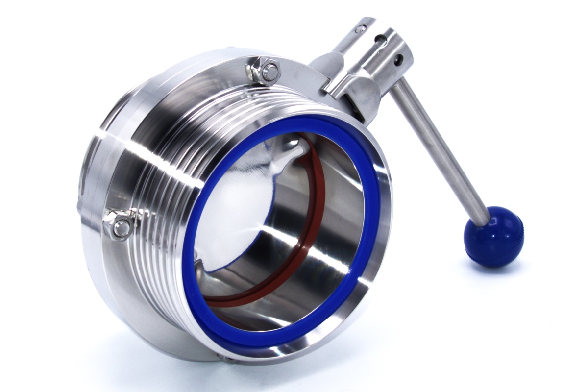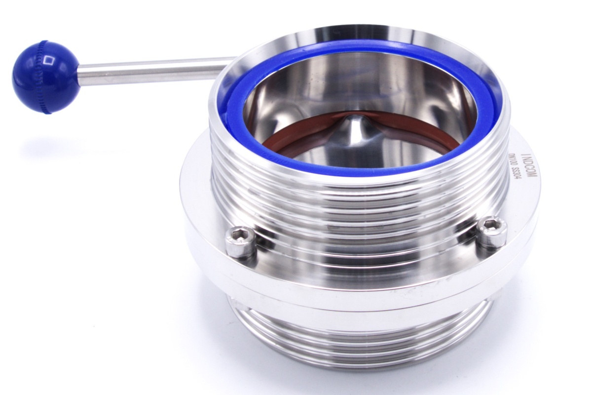 Stainless steel butterfly valve, threaded type DIN male/male