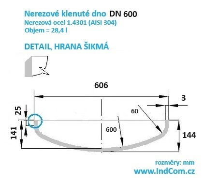DN600 (606x3 mm), inclined edge.
